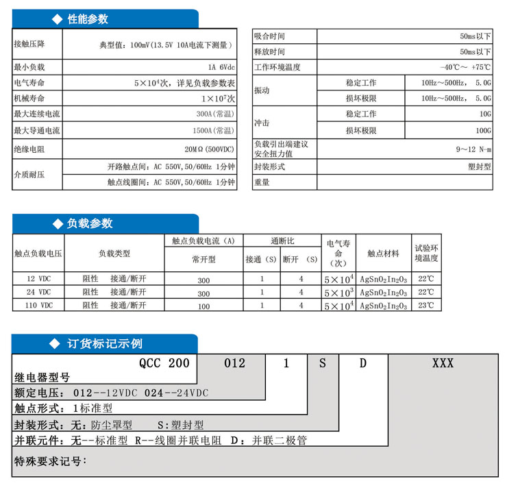 特性: · ●300A觸點切換能力 · ●具有一組常開觸點形式 · ●工作溫度高達75℃ · ●可搭配選用二極管或電阻 · ●符合RoHS、ELV指令 · ●帶有滅弧裝置 典型應用: 用於汽車啟動裝置、電源控製、預熱裝置。