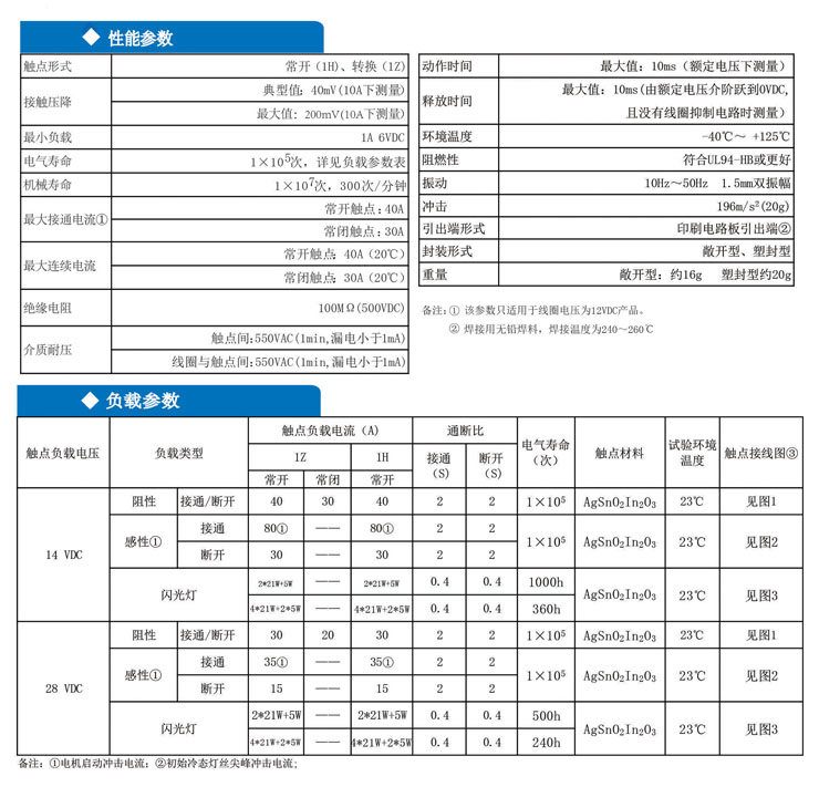 特性: · ●40A觸點切換能力 · ●具有一組常開、轉換2種觸點形式 · ●工作溫度高達125℃ · ●多種工作電壓 · ●具有美國式、歐洲式兩種引出端尺寸 典型應用: 轉向燈、危險信號燈、緊急刹車燈等燈光控製、汽車音響 中央門鎖、汽車空調、油泵控製、自動門窗、座椅調整、後窗除霧器、 防曬器、螺線管啟動開關、防盜器、低溫啟動