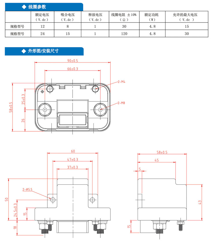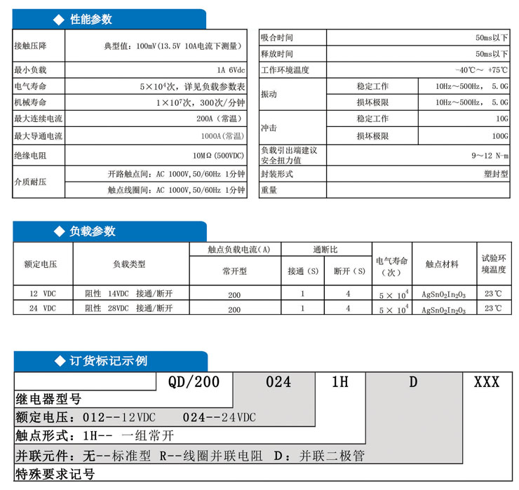 特性: · ●200A觸點切換能力 · ●具有一組常開觸點形式 · ●工作溫度高達75℃ · ●可搭配選用二極管或電阻 · ●符合RoHS、ELV指令 典型應用: 用於汽車電源控製、啟動裝置、預熱裝置。